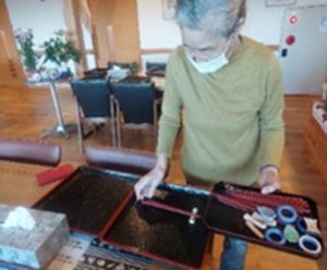 漬物を各お盆に1づつ、丁寧に置かれます。