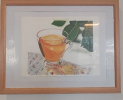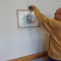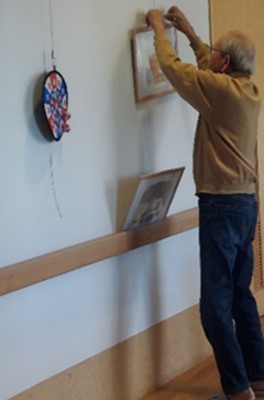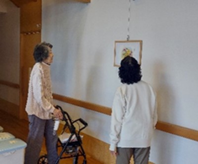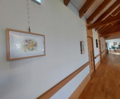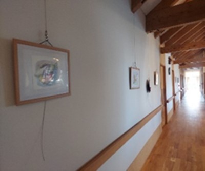 長い廊下を利用して、入居者様の描いた絵画を展示しています。