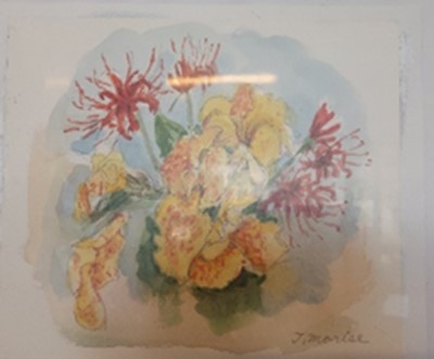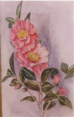 庭に咲く季節の花を描かれています。