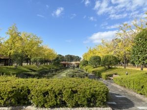広々とした公園にイチョウ並木や広場・遊具もあり、四季折々の様子が楽しめる