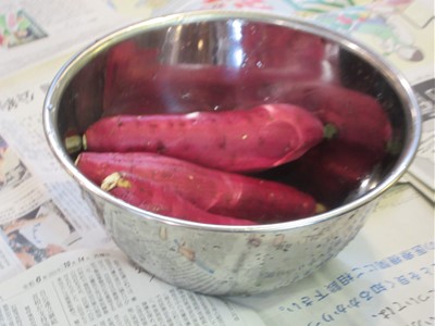 後は、職員で切った芋を水にさらして、電子レンジでチン♪