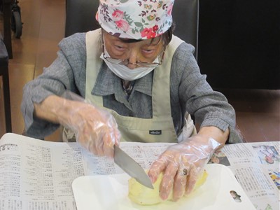 サツマイモの皮むきや輪切りは利用者様と一緒に♪