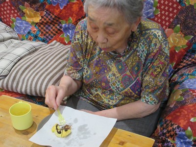 (途中、面会に来られたご家族様にもお手伝いしてもらいました。)