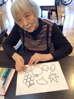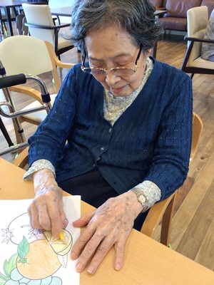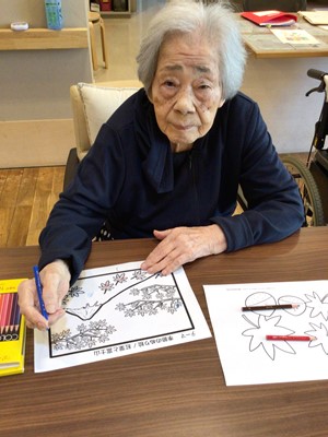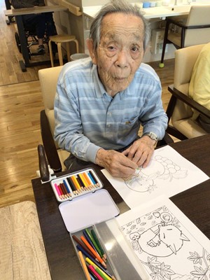 塗り絵をいくつか用意して、利用者様に選んでいただきました。