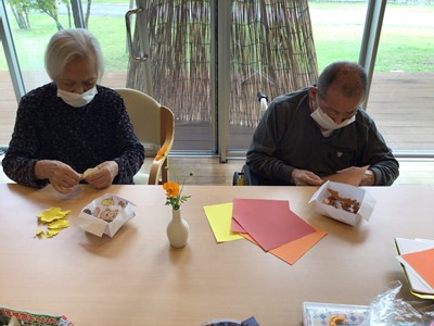 南ユニットでは来年の干支【蛇】をモチーフにした貼り絵を楽しんでいただきました🍁🐿️🐍