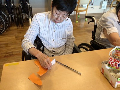 北ユニットでは、紅葉やイチョウ、リスといった秋をイメージする貼り絵。