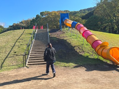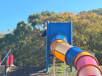 滑り台を見つけると喜んで?滑ってくれました。