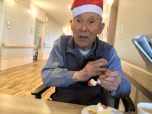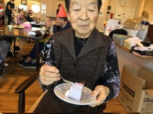 事前に入居者皆様へアンケートを行いケーキを2種類(ショートケーキ・ブルーベリーショコラケーキ)のどちらか一つを選んでいただいていたケーキを提供しました!