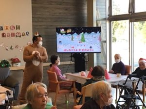 続いてはクリスマスソング「きよしこの夜」「ジングルベル」「赤鼻のトナカイ」を入居者皆様と職員で歌いました🎶