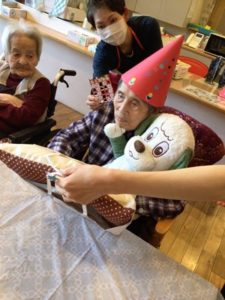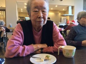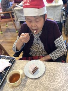 事前に入居者皆様へアンケートを行いケーキを2種類(ショートケーキ・ブルーベリーショコラケーキ)のどちらか一つを選んでいただいていたケーキを提供しました!