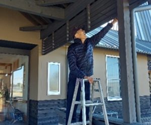 電気のコードを屋根から伸ばしていきます。
