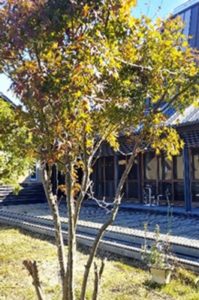 ひいらぎハウスの玄関を正面に、