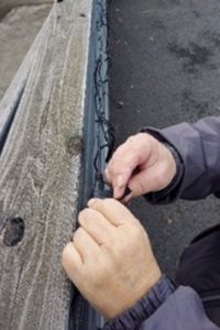 前日には、長い塀に、つららイルミネーションの設置です。