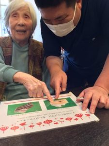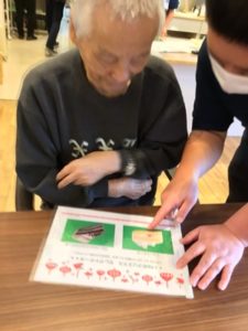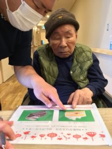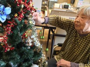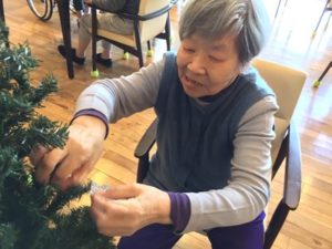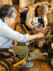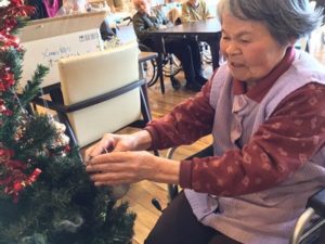「どこにかざろうか🤔」「ここにもう少し雪がほしいな~」