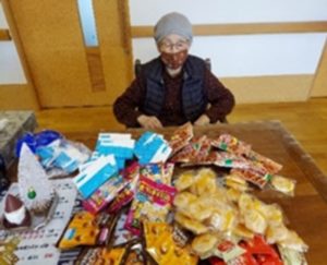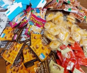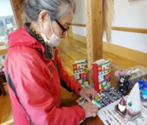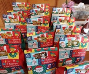 子供達へのプレゼント用にお菓子袋作りをしていました。