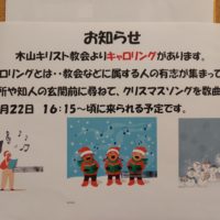 木山キリスト教会から、去年に引き続きクリスマスキャロリングで、