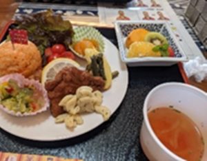 チキンライスには、クリスマスのイラスト付きのピックの旗をつけ・・・