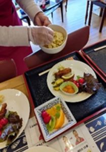 チキンライスには、クリスマスのイラスト付きのピックの旗をつけ・・・