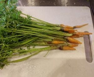 これはスタッフの家庭菜園で採れた間引きした人参です。