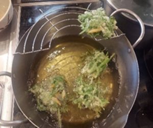 「前はねぇ、人参の葉はかき揚げにしてたのよ」