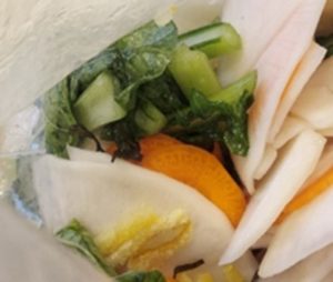 人参、かぶの葉、昆布、柚子を入れて、酢の物です。