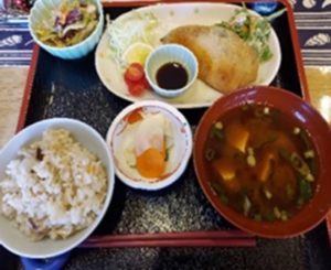 メインの白身魚に人参の葉のかき揚げをプラス!
