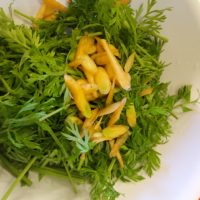 間引きした人参の葉っぱは、繊細で柔らかく色鮮やかです。