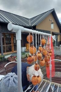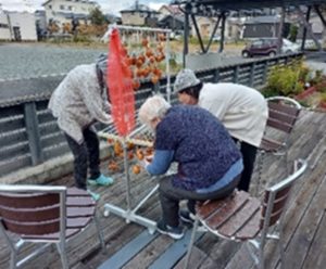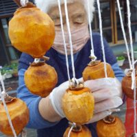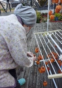 皆さんで一緒に柿を剥き、紐で結わえて、干し柿を作ったことが、