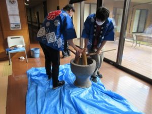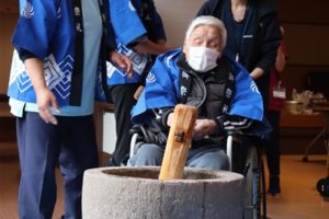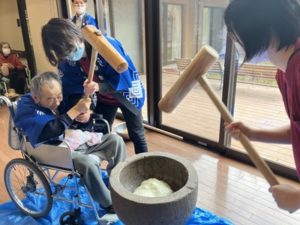 正月準備にはちょっと早いですが、年末恒例の餅つきをご利用者様と一緒に行いました。