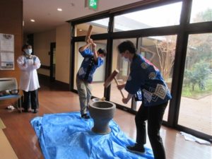 どんどん搗いて丸めて、職員も総出でなんとか全ユニット分を作成しました。