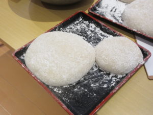 搗きあがったら、女性陣へバトンタッチ。丸く形を整えていきます。
