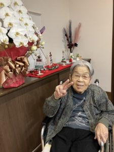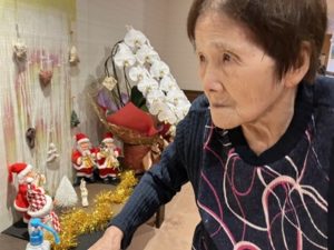 「綺麗かね~。」「大きい…。」ユニット玄関外に飾らせてもらいました。