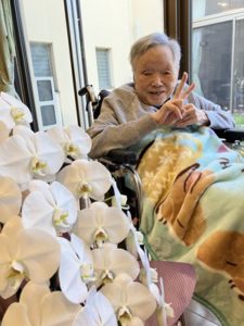 「綺麗かね~。」「大きい…。」ユニット玄関外に飾らせてもらいました。