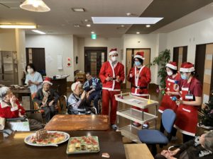 サンタクロースの扮装をした職員が提供🍰