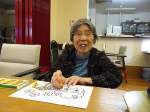今日の、レクレーション活動は塗り絵をしましたよ~✎