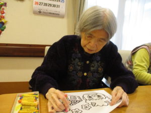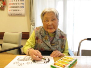 今日の、レクレーション活動は塗り絵をしましたよ~✎