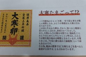 「大寒卵って初めて聞きました」と説明文に見入られます