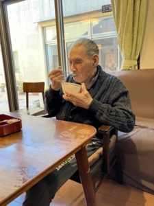 待ちきらなく「食べてよか?」「綺麗かね~。」職員が開ける前に召し上がられようとされたりと