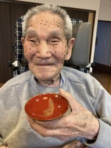 待ちきらなく「食べてよか?」「綺麗かね~。」職員が開ける前に召し上がられようとされたりと