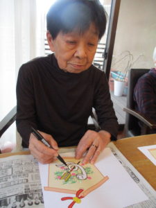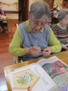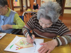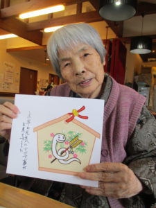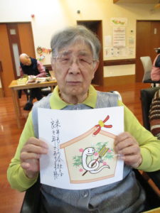 本日のレクレーション活動では、ご利用者様と共に絵馬を作成しました。
