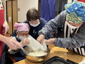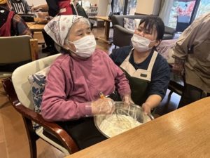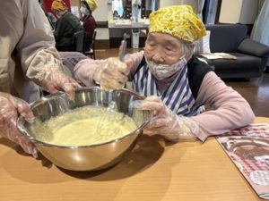 ご家族も一緒に、冗談をまじえながら笑顔でまぜていきます。