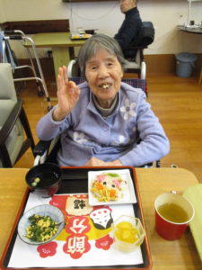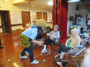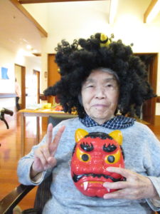 お昼からのレクレーション活動では、豆まきをしました。