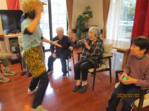 お昼からのレクレーション活動では、豆まきをしました。