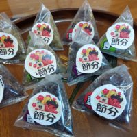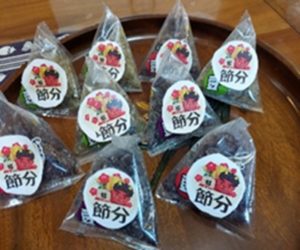 豆まきの代わりに、甘納豆に節分のイラストを載せて