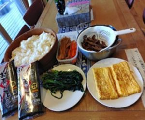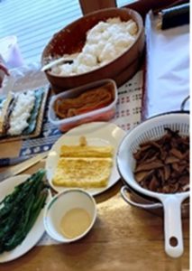 干ぴょう・干し椎茸・ほうれん草・人参・卵焼きです。