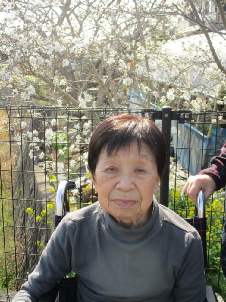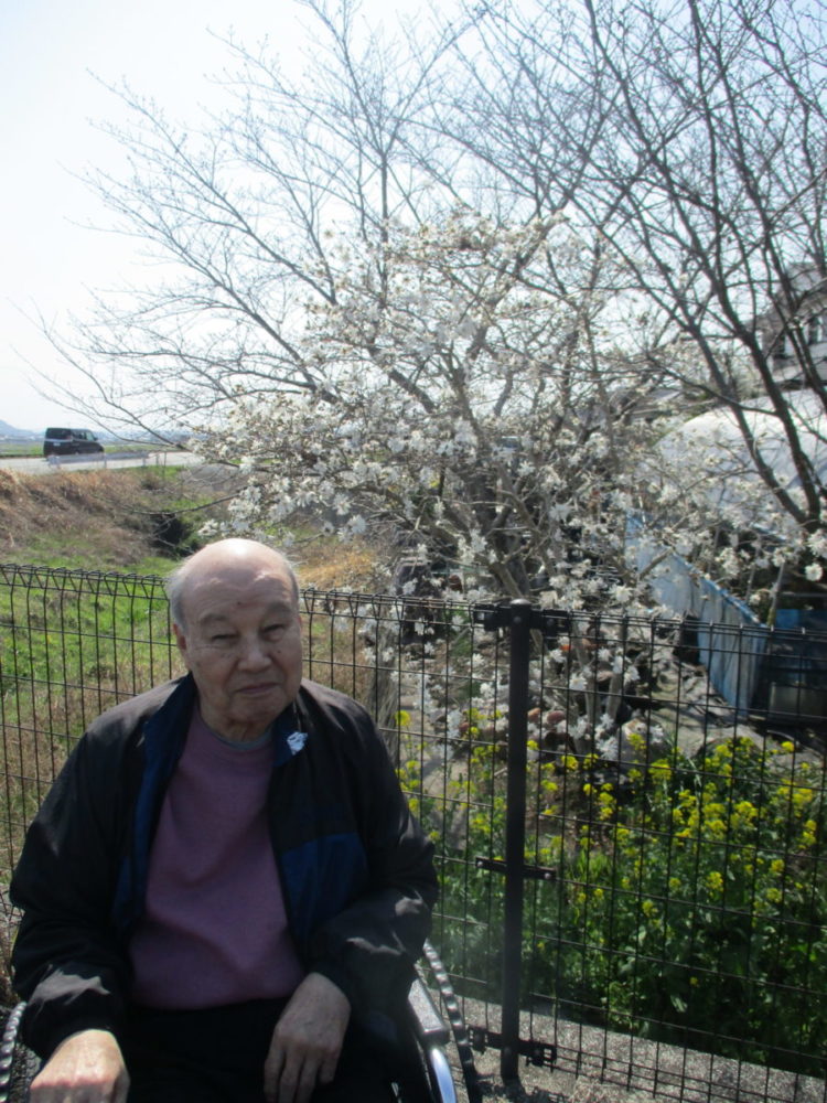 「あの山は何ですか」「菜の花もきれいかね」「この白か花は珍しい、あまり見たことないわよ」とお花を見ながら皆さん笑顔😊