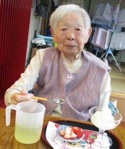 「イチゴ甘いね」「春っぽくていいね」と久しぶりの苺を楽しまれておられました。
