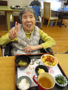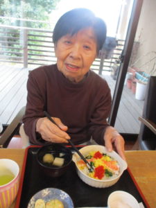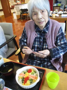 「いただきまーす!」「彩りのよかね」とちらし寿司を前に皆さんニコニコ😊✨