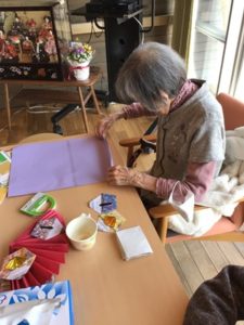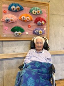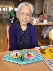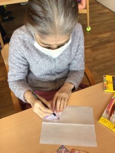折り紙を折って色鉛筆で顔を書きます!可愛くできました✨