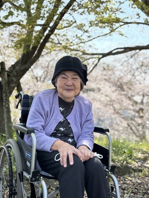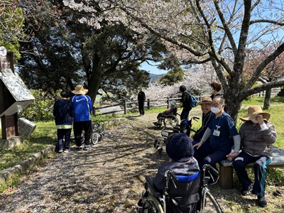 車いすや徒歩で少しだけ昇ると広場があって、そこにも桜が咲いています。